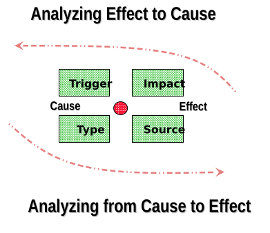 One of the unique abilites of ODC is not only identify cause --> effect, but build a model to simulate a trace back of Effect to Cause. We call this round-tripping. Once as particular consequence is root-cause-analzed to process causes, we can simulate "what-if-scenarios". For instance, explore what if we chose to enhance specific skills in this team? Would it make much difference to the end product? The figure below shows the round-tripping and how the simulations run.